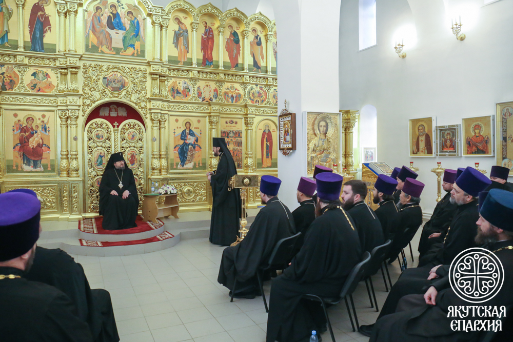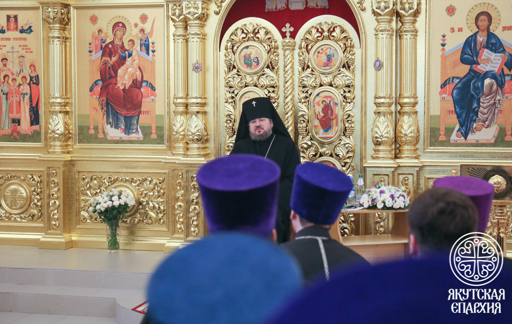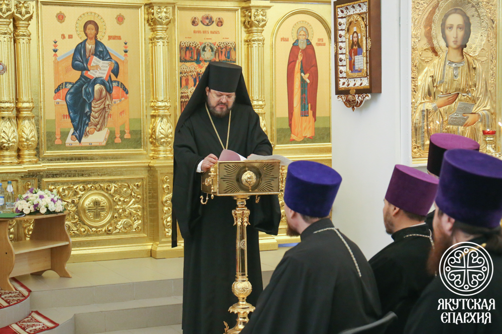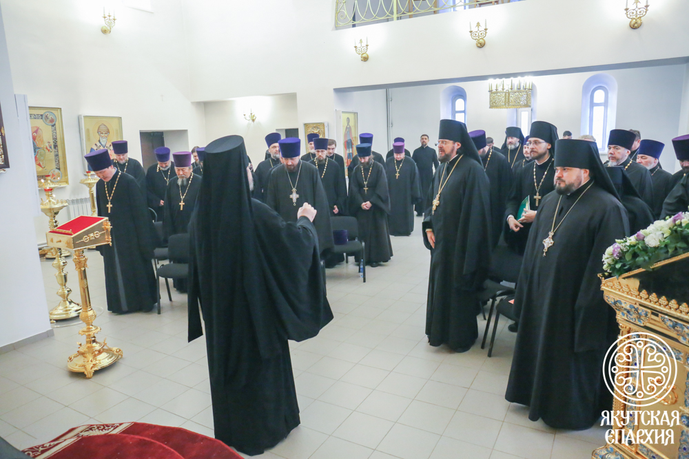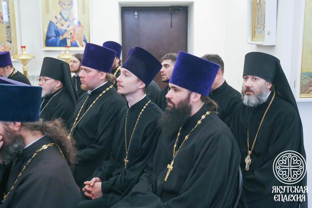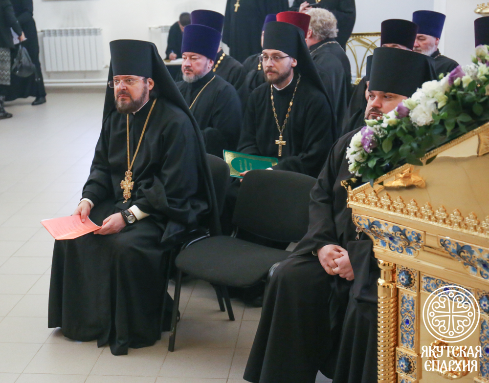 Затем секретарь епархии иеромонах Никандр (Горбатюк) огласил резолюцию Святейшего Патриарха на епархиальный отчет за 2024 год. С сообщением о новой концепции миссионерской деятельности Синодального миссионерского отдела выступил руководитель епархиального миссионерского отдела иеромонах Тихон (Воробьев). Затем иеромонах Никандр (Горбатюк) сообщил о миссионерском крестном ходе с главой святителя Иннокентия Московского по 38 епархиям Русской Православной Церкви, который начался в сентябре прошлого года. В Якутию святыня прибудет 26 декабря 2025 года и пробудет в пределах Якутской епархии около полутора месяцев.