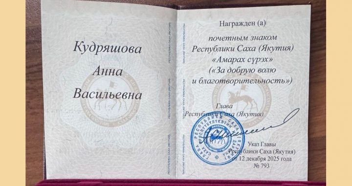 В год 155-летия учреждения Якутской епархии Указом Главы Республики монахиня Даниила (Кудряшова) награждена почетным знаком «За добрую волю и благотворительность». 14 декабря 2025 года архиепископ Якутский и Ленский Роман вручил ей высокую награду.