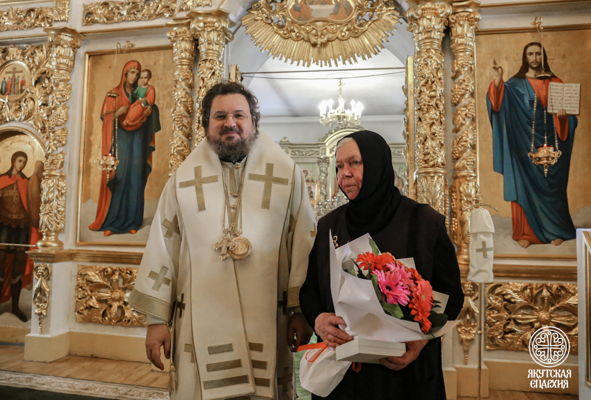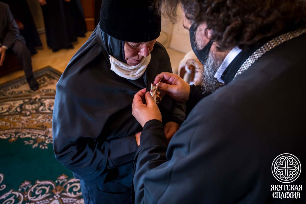 Матушка была отмечена многими церковными и государственными наградами, а за несколько дней до своей блаженной кончины, 14 декабря с.г., Указом главы Республики Саха (Якутия) А. С. Николаева она была удостоена почетного знака «За добрую волю и благотворительность».