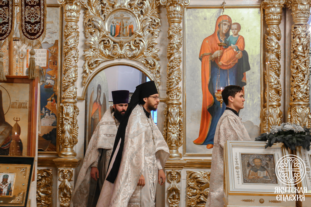 6 января 2026 года, в навечерие Рождества Христова, архиепископ Якутский и Ленский Роман совершил в Преображенском кафедральном соборе уставное богослужение – вечерню с Литургией Василия Великого. Богослужение завершилось пением тропаря и кондака Рождества Христова перед праздничной иконой.