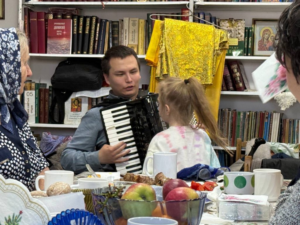 После службы для всех участников была организована совместная трапеза. Настоятель храма и руководитель молодёжного отдела Якутской епархии иерей Святослав Малохатко поздравил прихожан с праздником и вручил детям сладкие подарки.