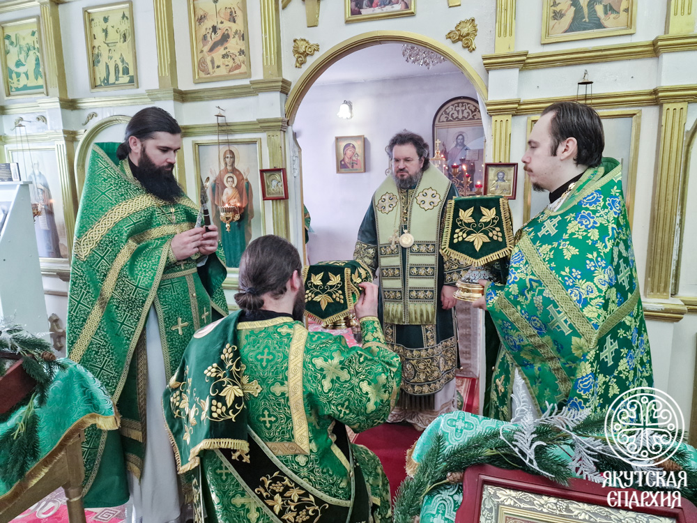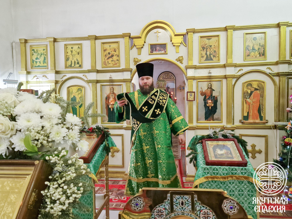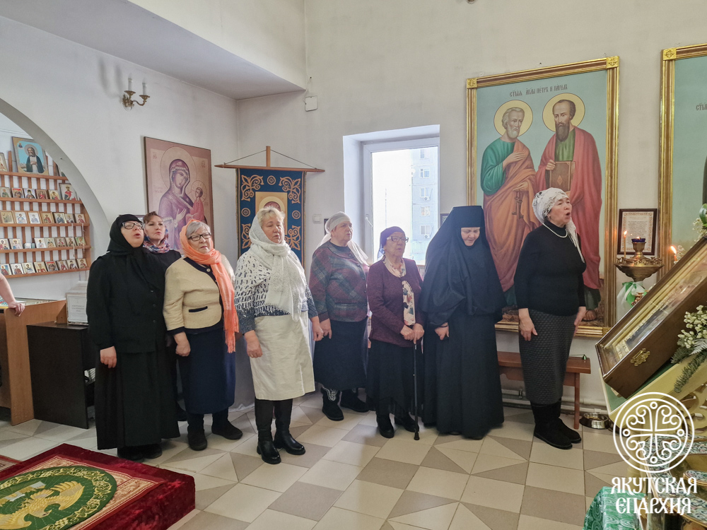 Владыка поблагодарил настоятеля храма иерея Святослава Малохатко, а также активных прихожан, и вручил им иконы Божией Матери «Абалакская», написанные к 155-летию Якутской епархии.
