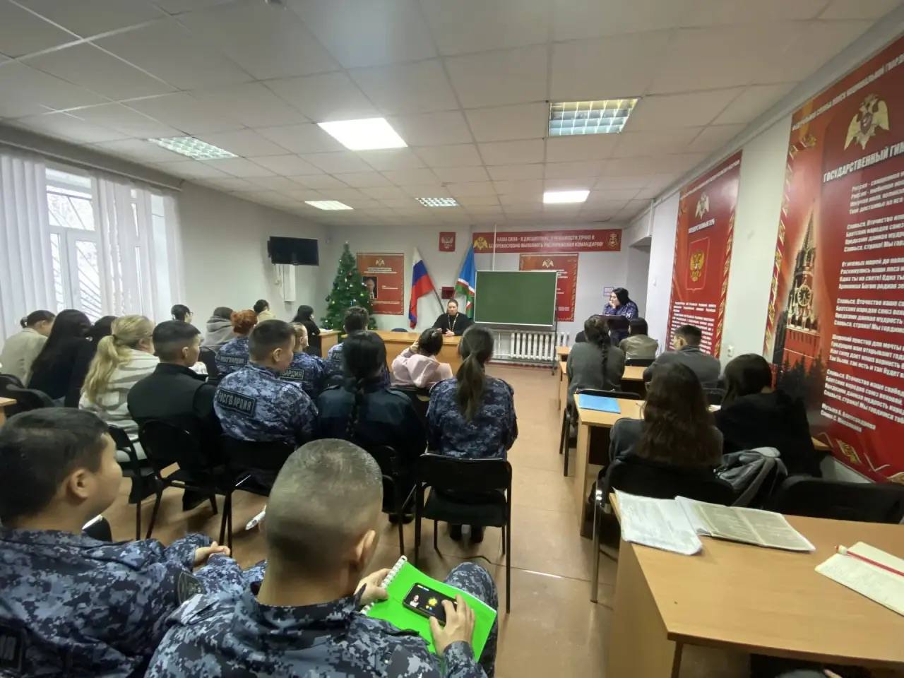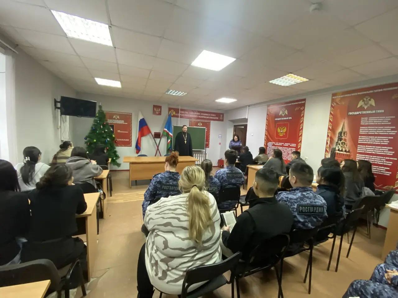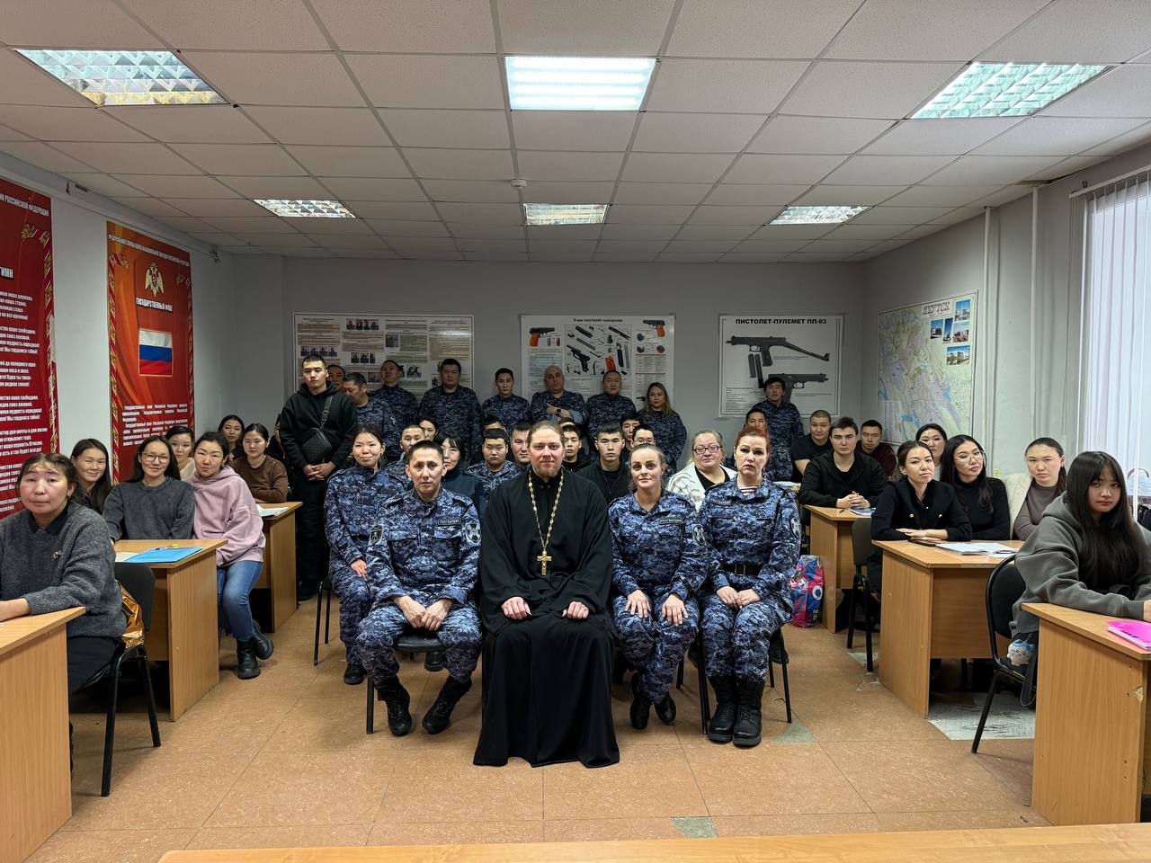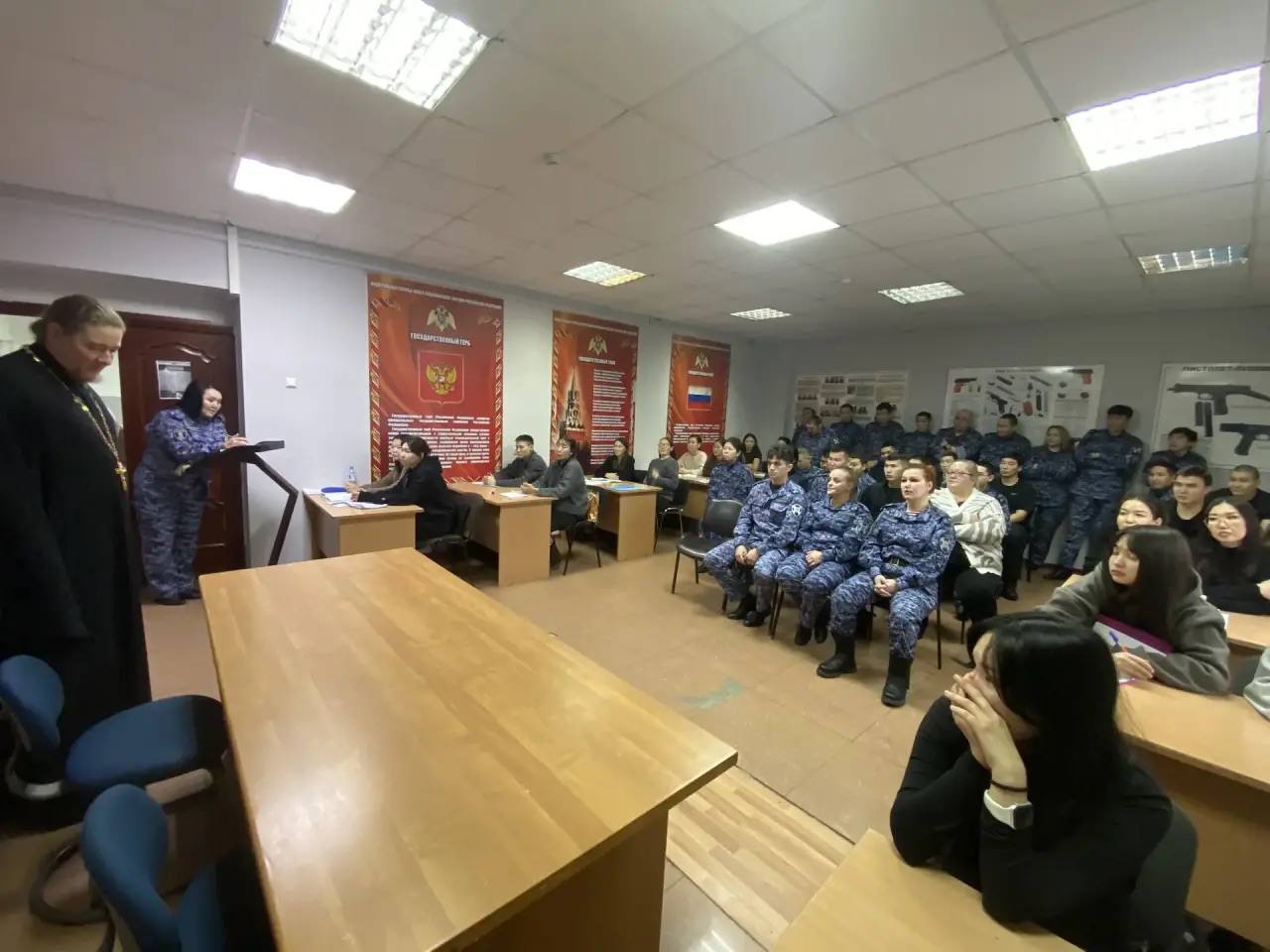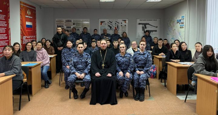 16 января 2026 года настоятель Никольского храма города Якутска священник Александр Коробкин посетил отделение Росгвардии. Священник провел с сотрудниками беседу о Рождестве Христовом и Крещении Господне и рассказал о духовном смысле праздников.