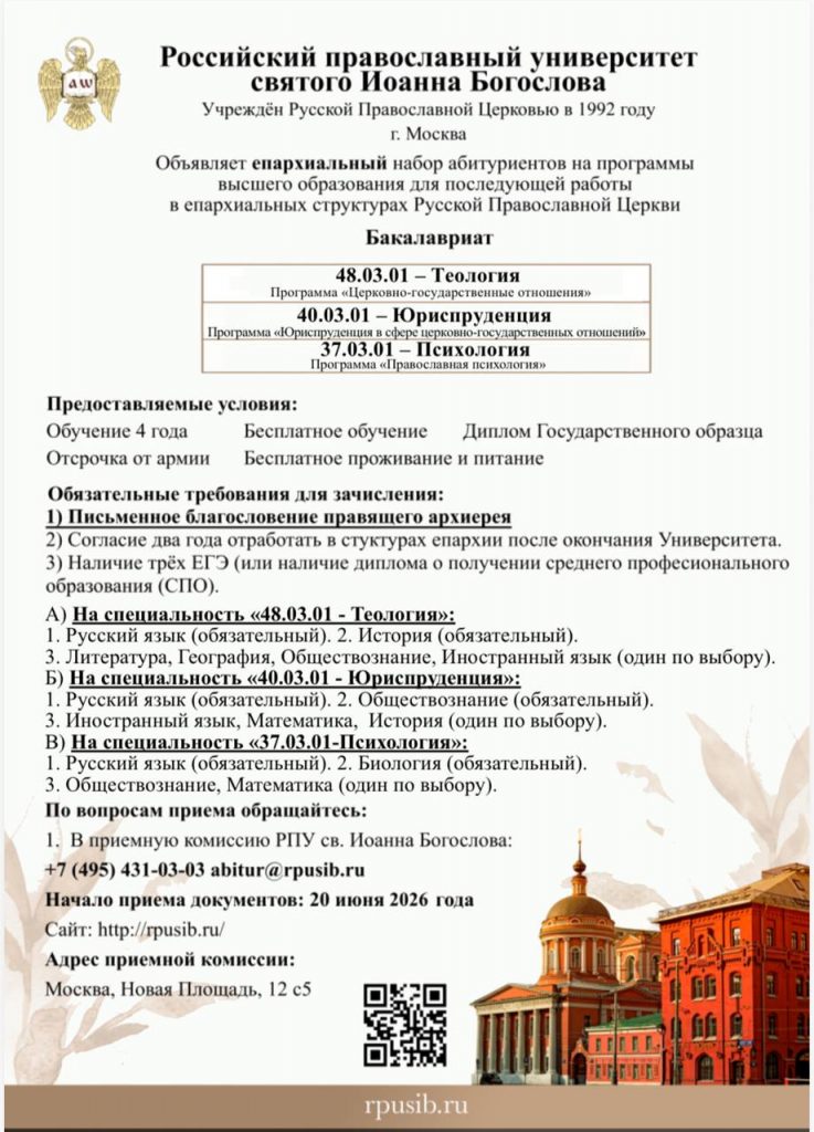 Российский Православный университет святого Иоанна Богослова объявляет епархиальный набор абитуриентов Posted on 18.01.202618.01.2026 by Якутская Епархия Объявление в формате pdf Posted in Важная информация.