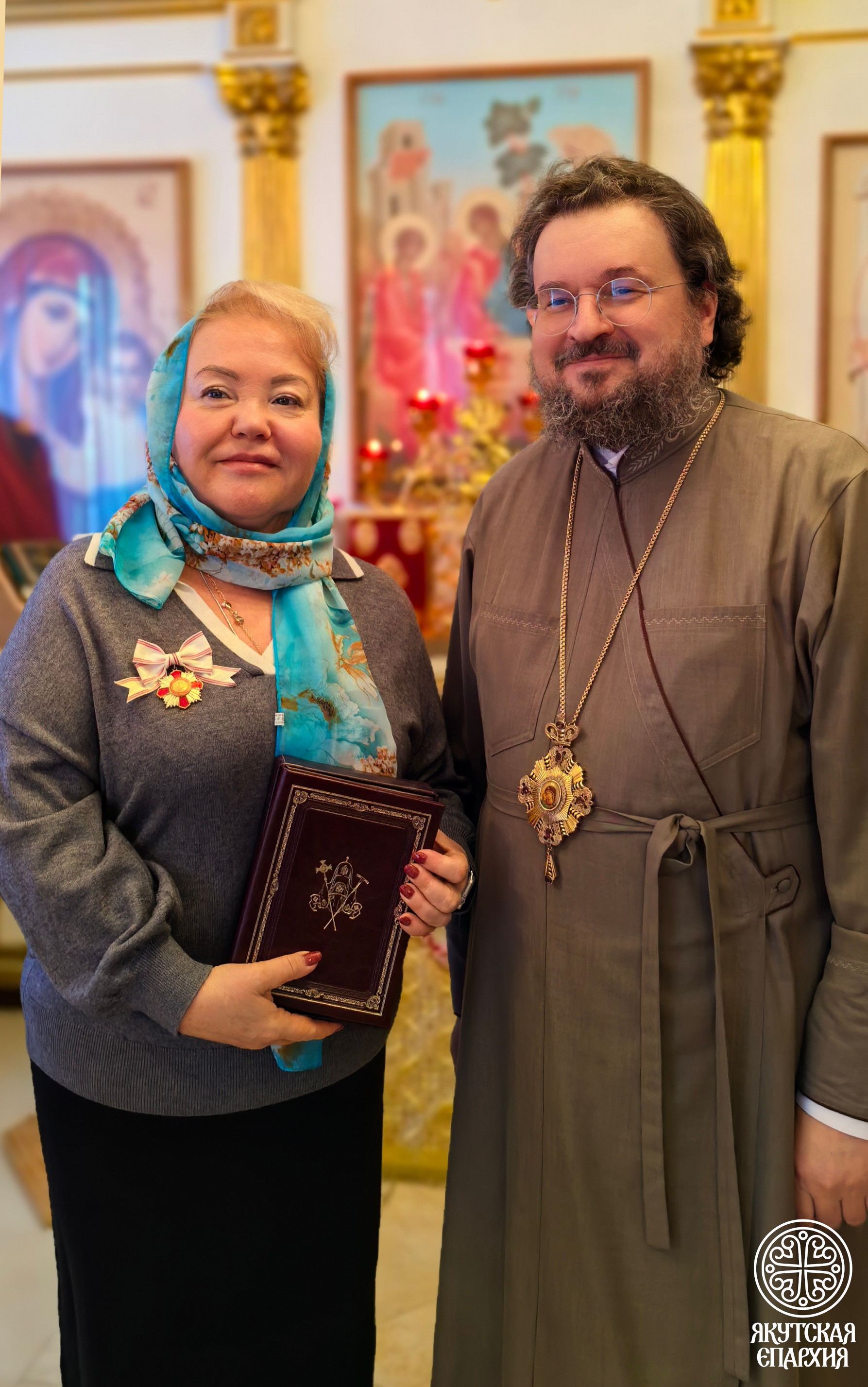 Затем архипастырь вручил директору центра Людмиле Николаевне Цой высокую церковную награду — Орден Русской Православной Церкви преподобной Евфросинии, великой княгини Московской.