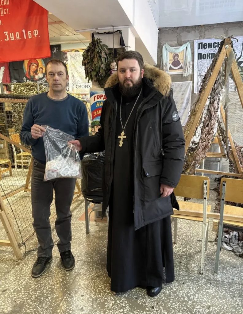 10 февраля 2026 года клирик храма святителя Иннокентия Московского города Ленска иерей Симеон Михайлов передал в волонтерский штаб «Ленский покров» подарки, изготовленные участниками кружка бисероплетения при воскресной школе храма.