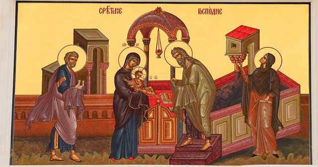 Сретение это праздник встречи. Однако речь идет не просто об исторической встрече, описанной в Евангелии и очень важной лишь для нескольких людей. Таинственное событие, воспоминаемое сегодня, на самом деле простирается в вечность. Праведный Симеон, принявший Младенца Иисуса, стал образом всякой человеческой души, жаждущей Бога. Дитя, Которое объемлет руками старец (припев на 9-й песни канона), Тот же Самый Христос, Который стоит у дверей нашего сердца и стучит (Откр. 3:20), ожидая, что мы примем и полюбим Его всею душею и всем разумением (Мф. 22:37).