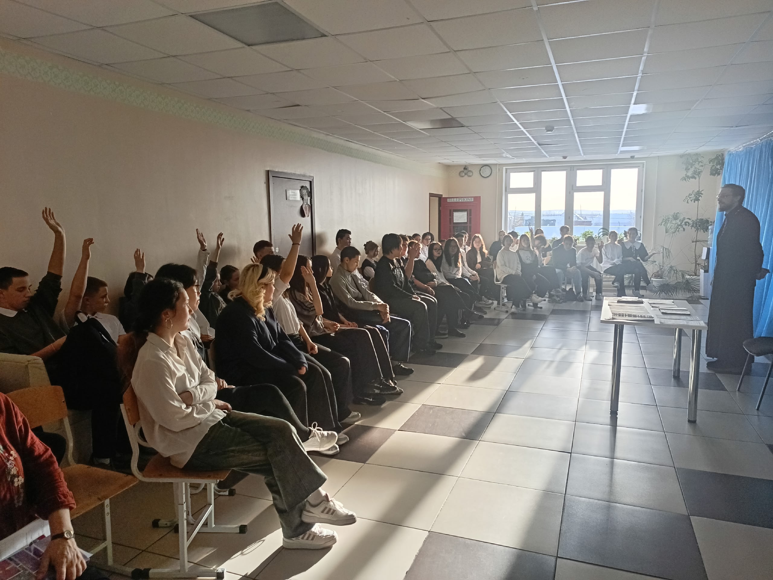 25 февраля 2026 года благочинный 3 Центрального округа иеромонах Тихон (Воробьев) посетил среднюю школу села Петропавловск Усть-Майского района и провел встречу с учащимися на тему антицерковной политики в первые десятилетия существования СССР. На встрече особое внимание уделялось пострадавшим священникам Якутии. Мероприятие проходило в рамках реализации проекта Якутской епархии «Священнослужители Якутии — свидетели совести».