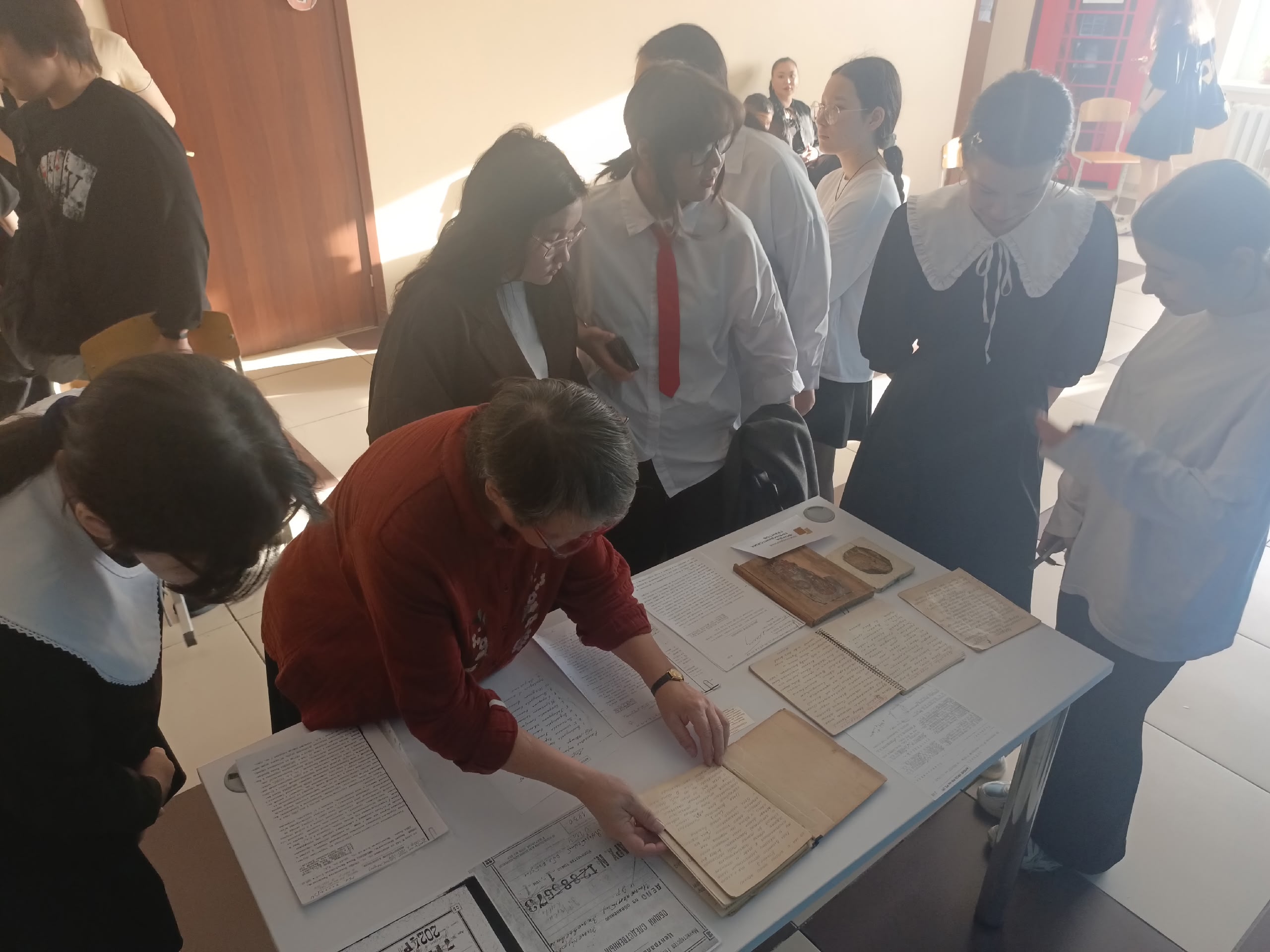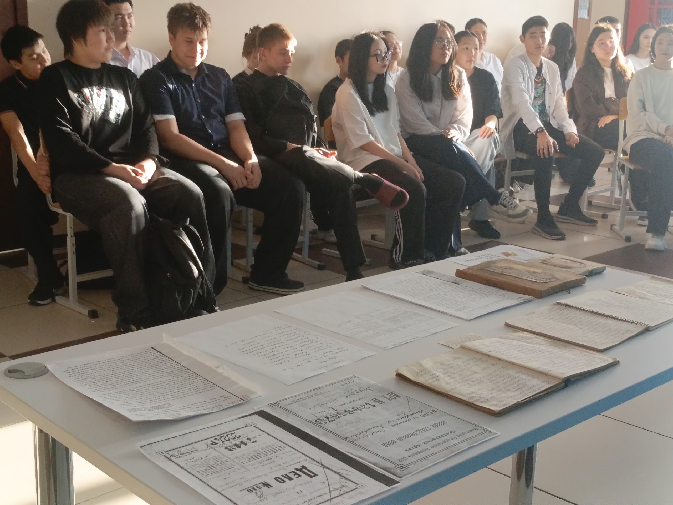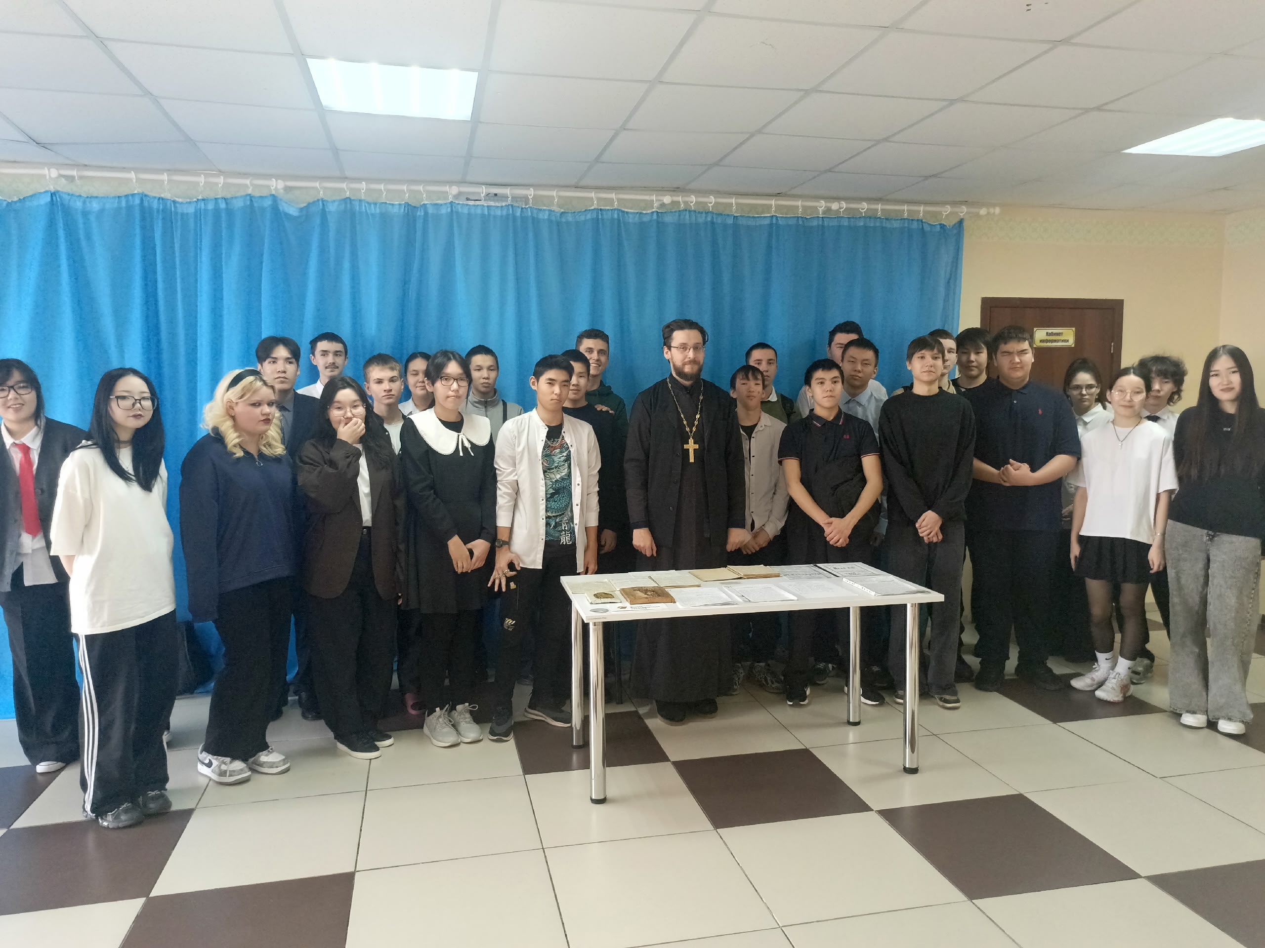 Школьникам была предложена тематическая выставка предметов, отражающие быт и дух эпохи: фрагменты архивно-следственных дел якутских священников, рукописные молитвословы и иконы. Многие из них передавались из поколения в поколения в местах проживания ссыльных и спецпереселенцев.