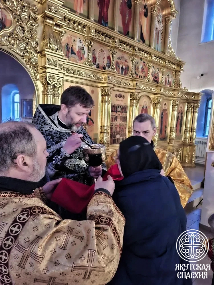 6 марта 2026 года во Всехсвятском храме города Якутска совершалась Литургия Преждеосвященных Даров, которую возглавил благочинный Городского округа секретарь Якутской епархии иеромонах Никандр (Горбатюк). Ему сослужил наместник храма иеромонах Гермоген (Рубцов).