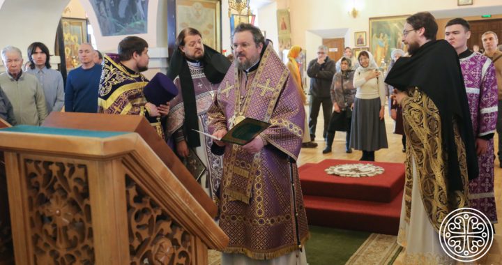 Проповедь перед Причастием на Литургии произнес иерей Алексий Корнильцев, заместитель директора Межъепархиального центра подготовки церковных специалистов. В завершение богослужения было совершено славление перед образом блаженной Матроны Московской, память которой совершается 8 марта, с ее святыми мощами, а затем владыка обратился к прихожанами с наставлением: