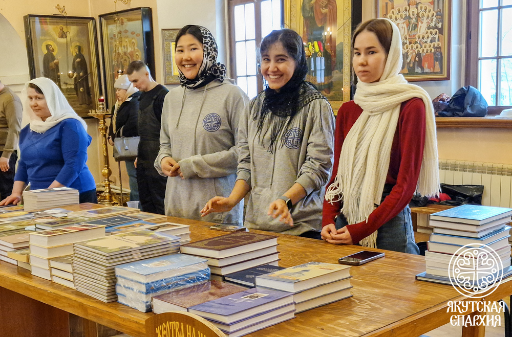 В раздаче книг в течение всего дня принимали активное участие волонтеры молодежного отдела Якутской епархии. Руководитель отдела, клирик Преображенского кафедрального собора, иерей Святослав Малохатко совершил молебен и произнес проповедь о Дне православной книги.