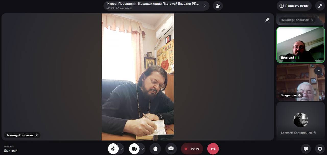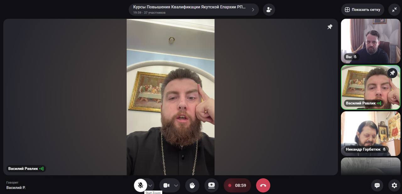 Завершается цикл лекций Екатеринбургской семинарии на курсах повышения квалификации для духовенства. 31 марта 2026 года клирики Якутской епархии прослушали лекцию по теме «Введение в психологию», которую прочитал священник Дмитрий Югас. 1 апреля 2026 года священник Василий Равлик прочитал заключительную лекцию «Взаимодействие Церкви, государства и общества в области образования».